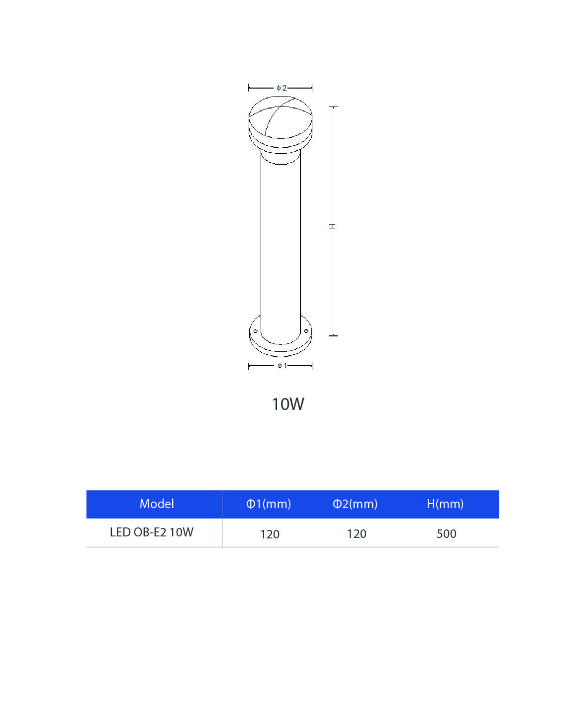 LED Bollard-E2 H500 10W 3000-BK-GP